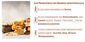 Si vous vous demandez pourquoi et bien nous vous laissons examiner la composition des barres dites "RAW" (crues). Dans le meilleur des cas, elles sont composées d'une grande quantité de dattes et le résultat est une barre extrêmement sucrée. Dans le pire leurs compositions comportent des additifs.
